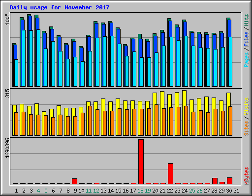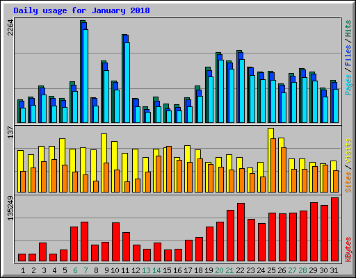 | Day | Hits | Files | Pages | Visits | Sites | KBytes | ||||||